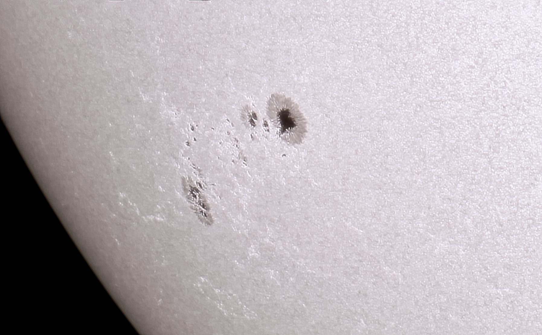 Eine Sonnenfleckengruppe, aufgenommen im Weißlicht. Für die Aufnahme hab ich eine Baader-Solarfolie verwendet.