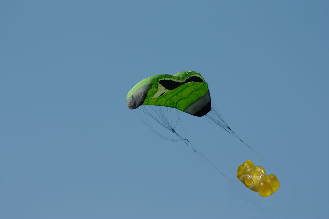Der Abstieg gestaltete sich leichter. Die Bersteiger hatten Fluggeräte mit auf den Berg genommen, die sie nun auspackten. Ein kurzer wagemutiger Sprung und schon ging es los, abwärts ins Tal, nach Hause!
