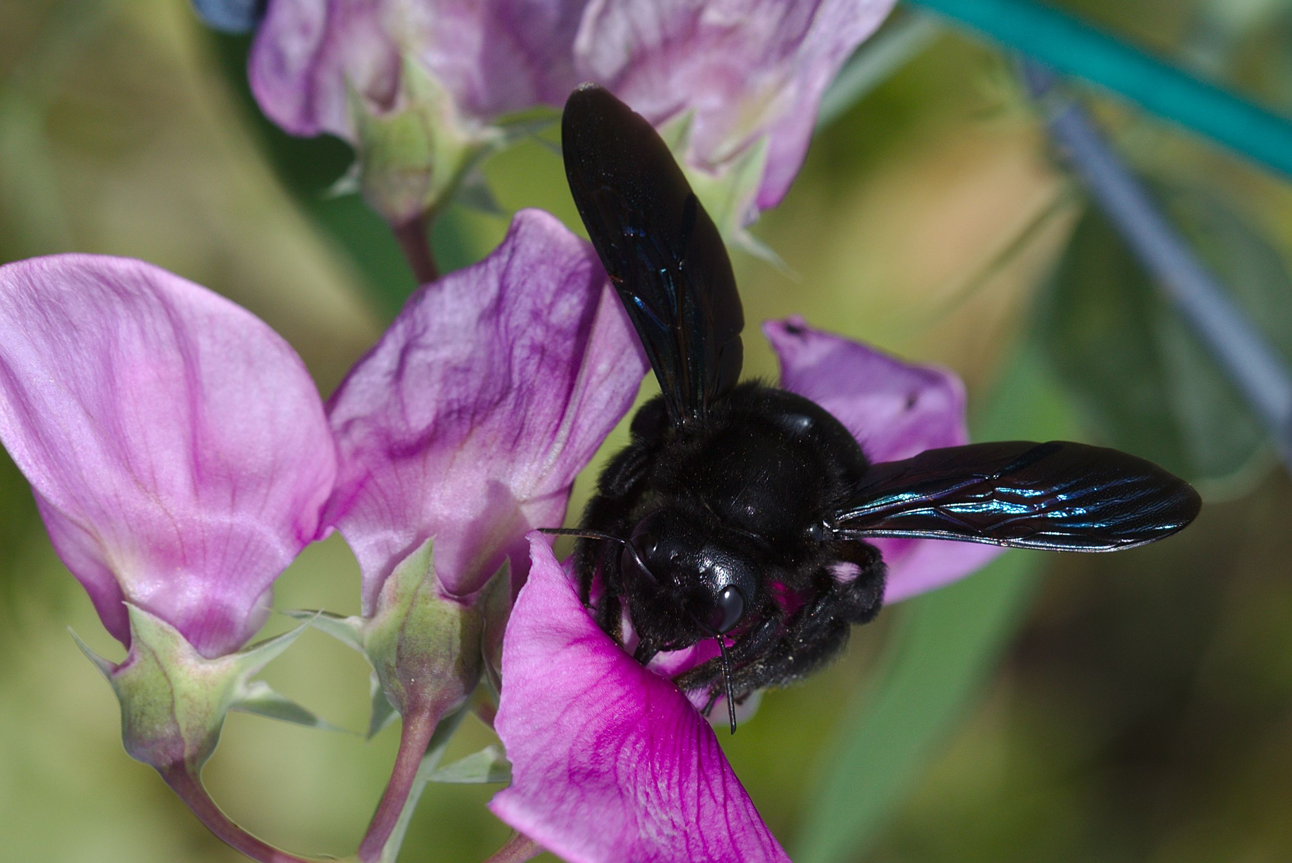Heute zum ersten Mal überhaupt hier bei uns gesehen. Der Riesenbrummer war größer als die großen Hummeln, brummelte dafür aber weit weniger 🙂 Und er war ziemlich flink.