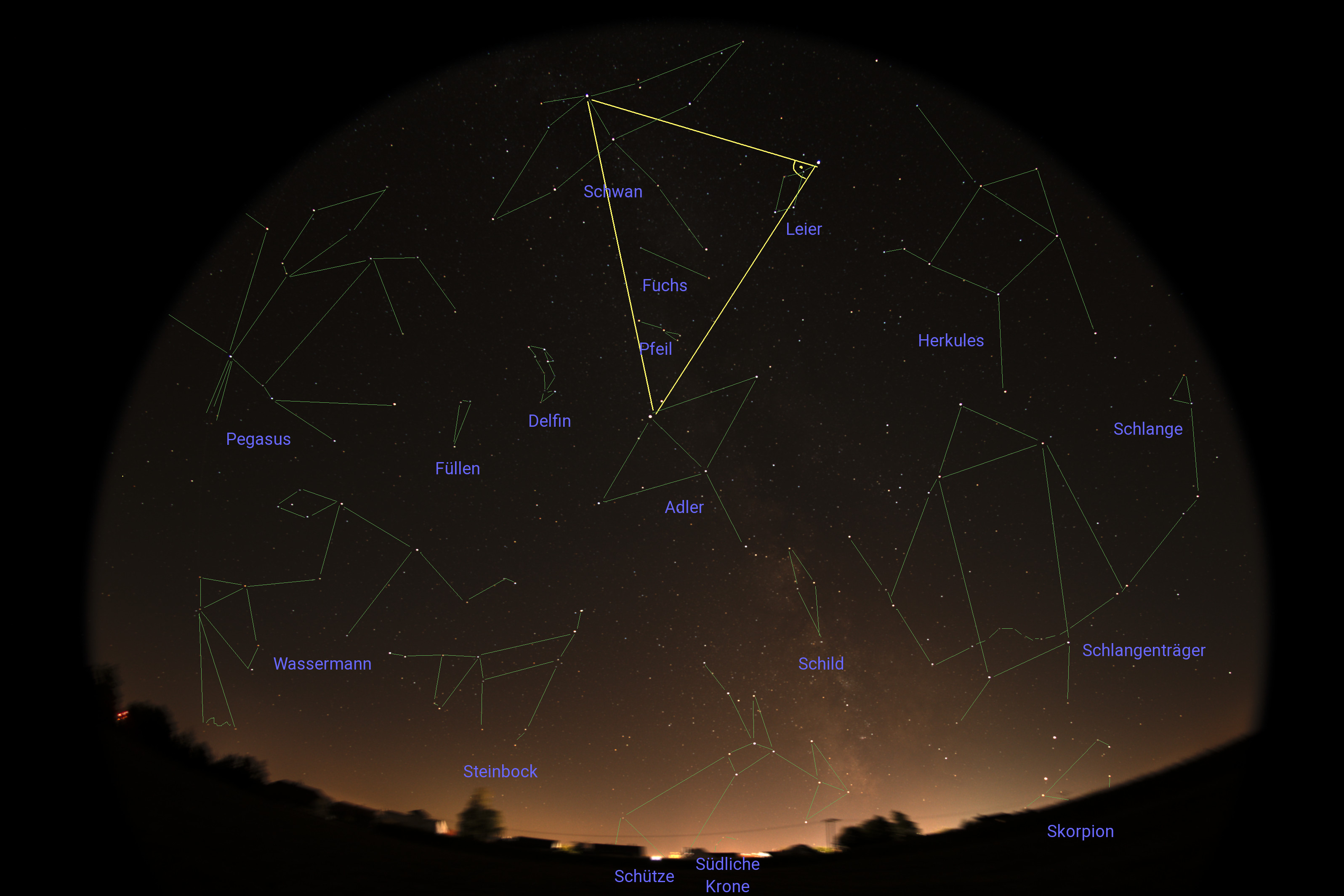 Das Sommerdreieck Ist eine wunderbare Lokalisierunghilfe für die Sternbilder Schwan, Adler und Leier.