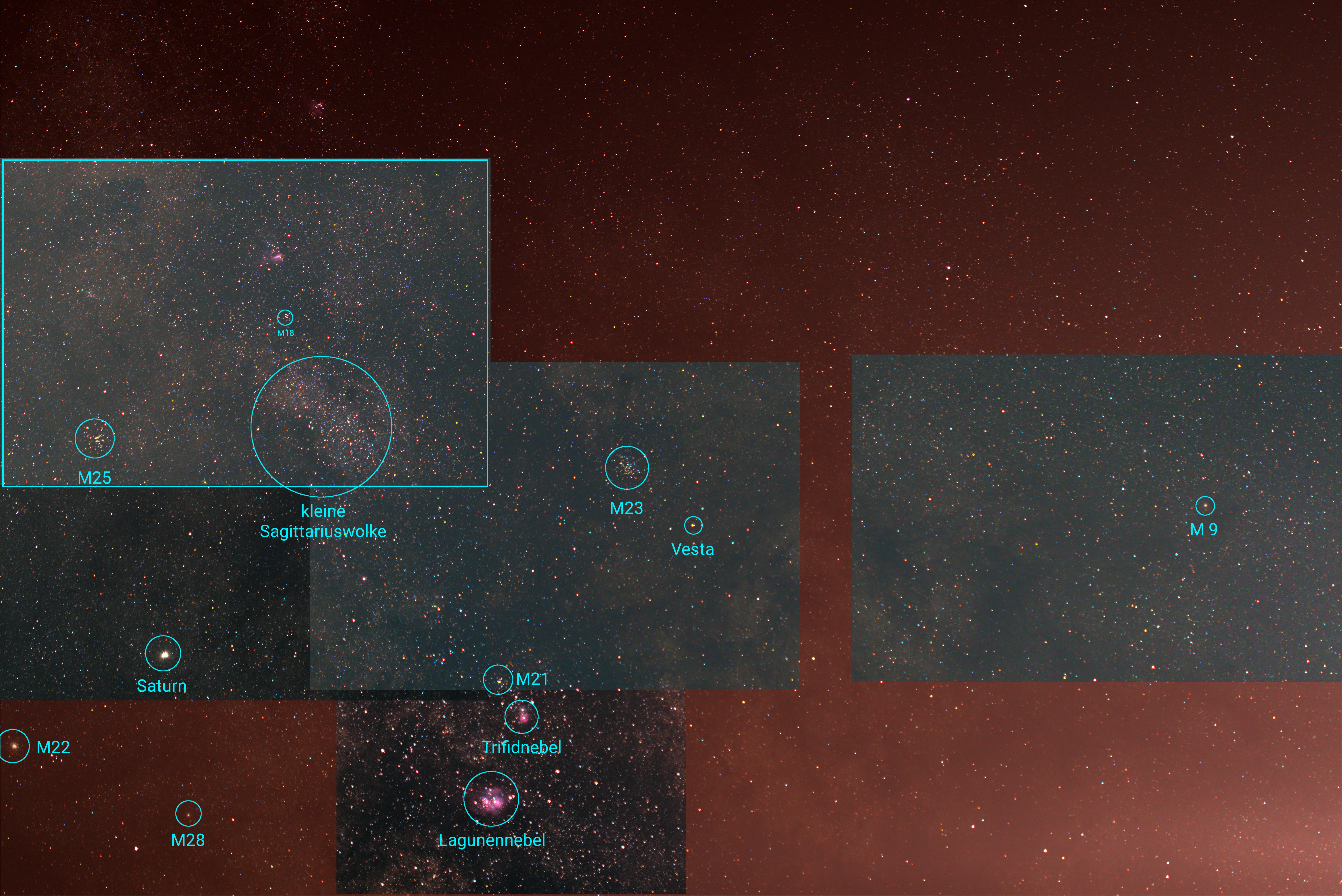 Wir befinden immer noch im selben Bildausschnitt der „kurzen Sommernacht„, der schon für den ominösen Schwarzen Schwan-Haufen gültig war. Ich hab ins Übersichtsbild M18 mit reingemalt.