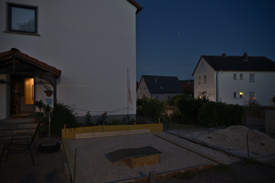Ein Blick über die Sternwartenbaustelle hinweg in Richtung Jupiter. Der Planet stand so hell am abendlichen Dämmerungshimmel, daß ich ihn einfach fotografieren mußte. 🙂