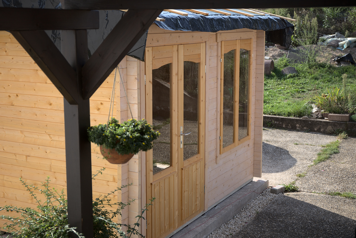 Die Paar Pinselstriche haben sich übrigens im Laufe der Woche summiert. Wir haben es geschafft, alles außen einmal rundherum zu lasieren.