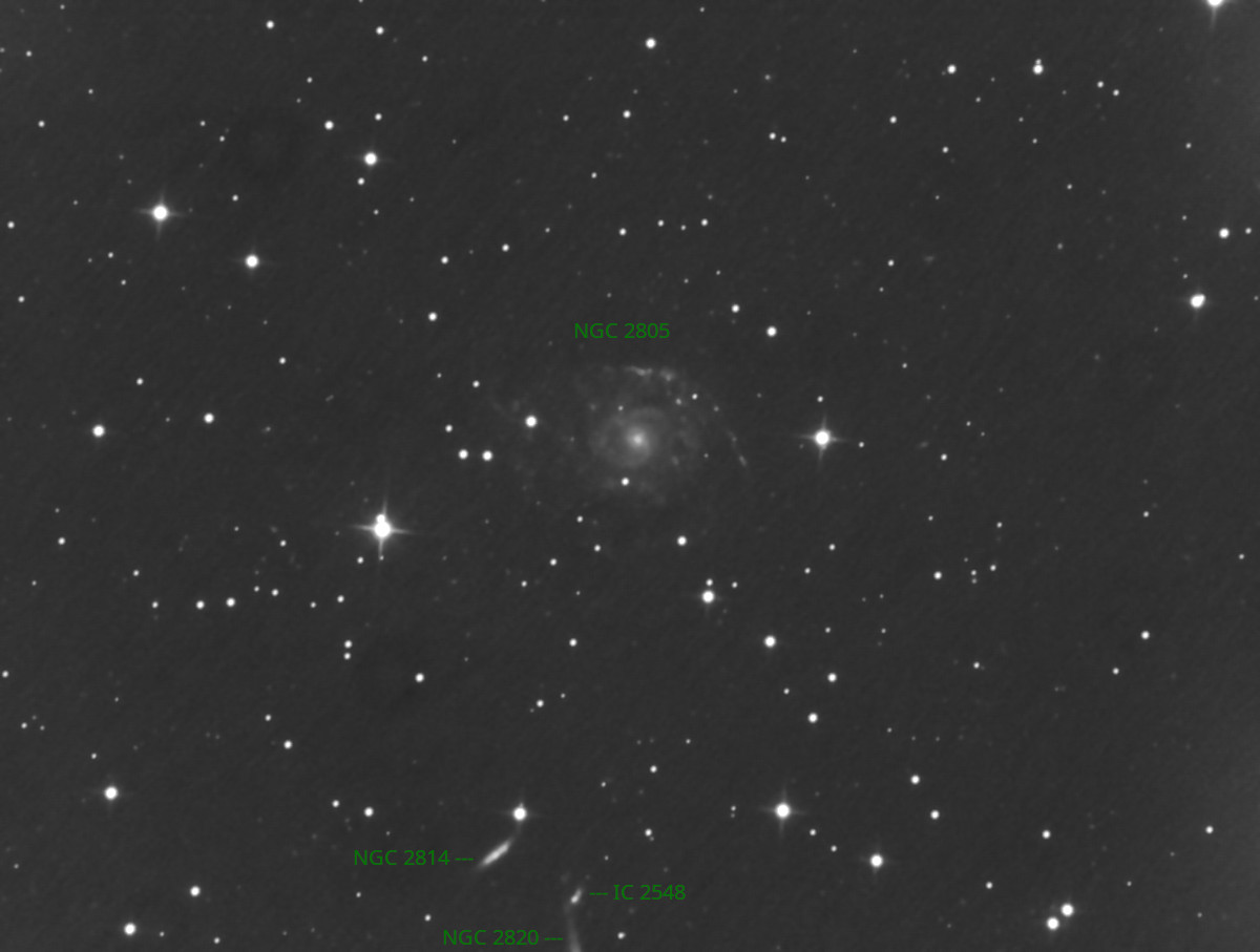 NGC 2805, NGC 2814, NGC 2820 und IC 2548.