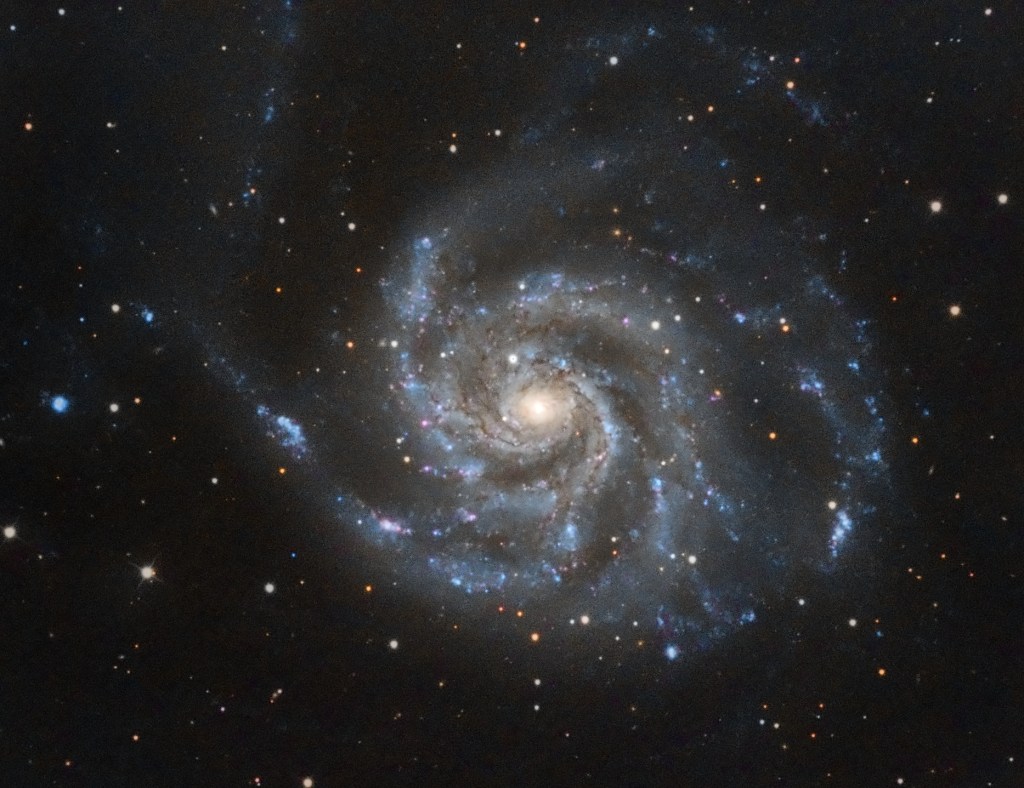 Hier eine Neubearbeitung von Messier 101, die auch Pinwheel-Galaxy genannt wird. Ich hab das Bild in voller Auflösung eingestellt. Ihr braucht nur ein oder zweimal auf das Foto klicken.