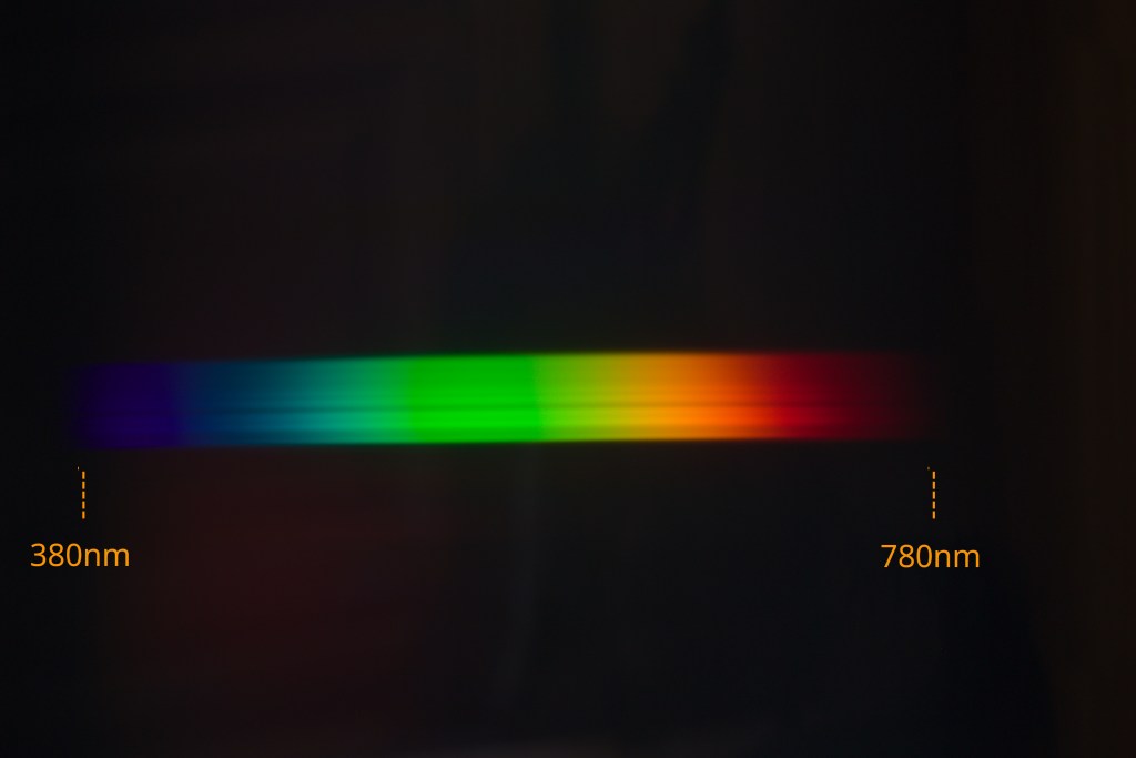 In Ermangelung eines Prismas hab ich ein Transmissionsgitter für mein Foto des Farbspektrums genommen: