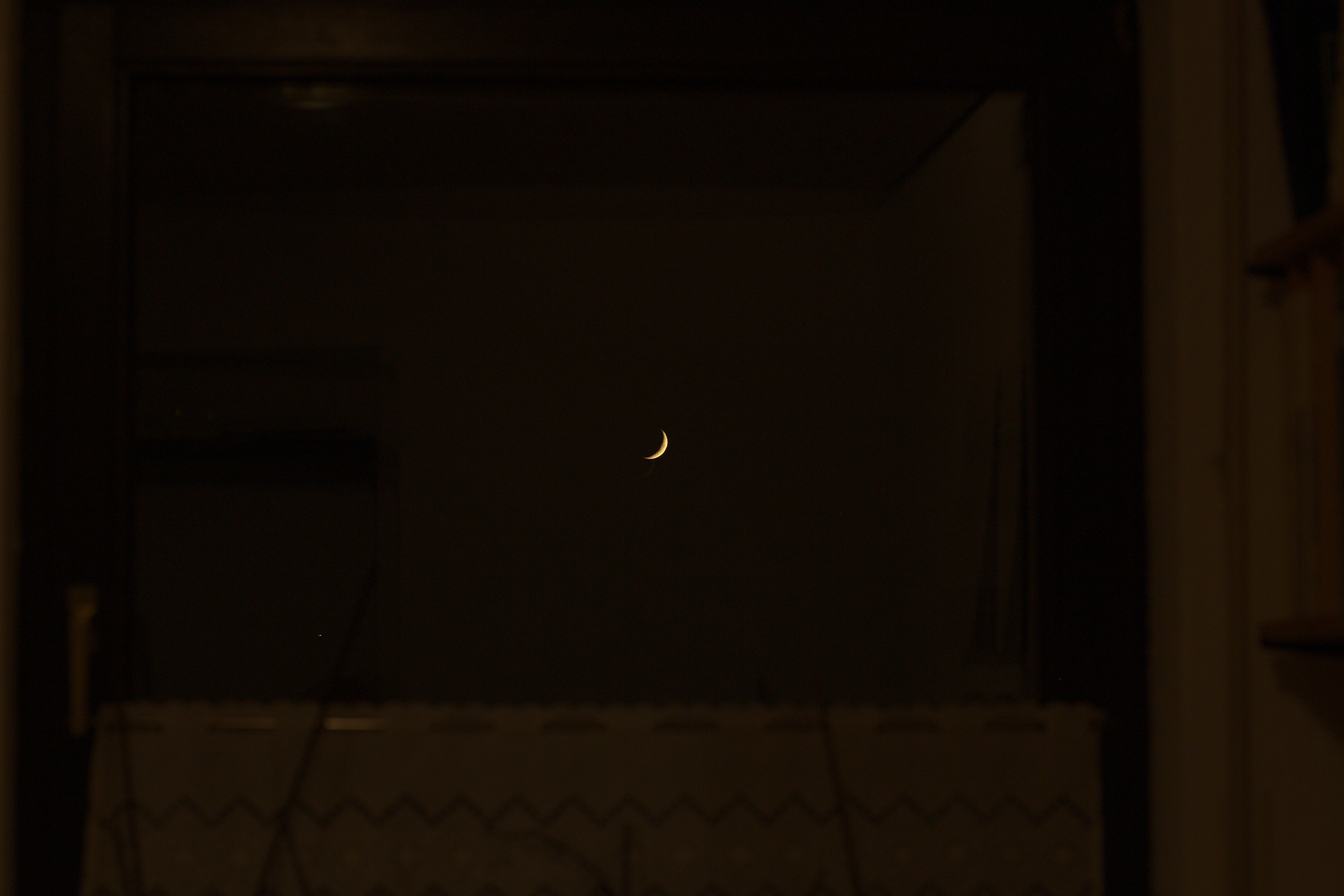 Was schaut denn da zum Fenster rein? Das ist doch tatsächlich der Gevatter Mond, kurz bevor er sich zur Ruhe begibt. Freihandaufnahme über den Monitor hinweg aus dem erleuchteten Zimmer. 100mm Makro-Objektiv an der 6D. Teilen mit: Klicke, um auf X zu teilen (Wird in neuem Fenster geöffnet) X Klick, um auf Facebook zu teilen (Wird in neuem Fenster geöffnet) Facebook Gefällt mir Wird geladen …