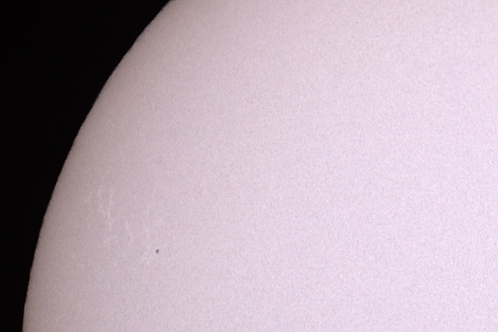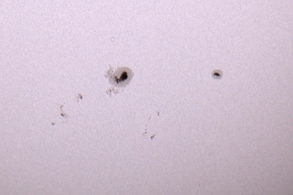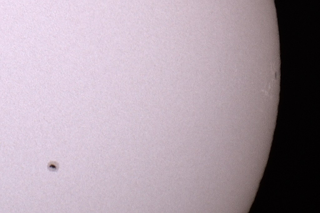 Das waren die 5 Fleckengruppen. Links unten am Sonnenrand ist mir noch ein klitzekleiner Fleck aufgefallen. Keine Ahnung, ob der noch einen Namen bekommt: