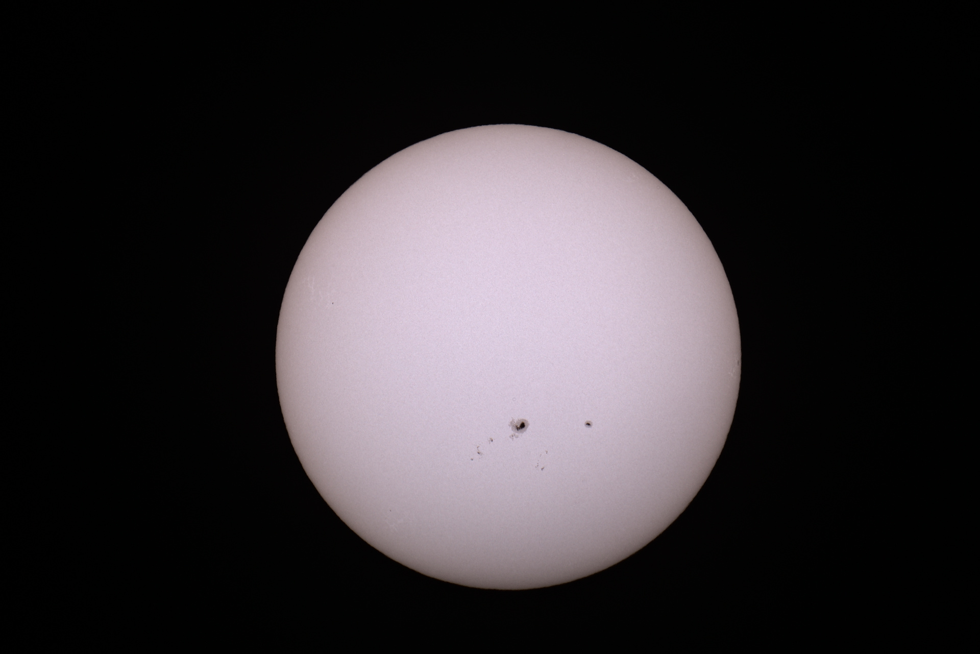 Das waren die 5 Fleckengruppen. Links unten am Sonnenrand ist mir noch ein klitzekleiner Fleck aufgefallen. Keine Ahnung, ob der noch einen Namen bekommt: