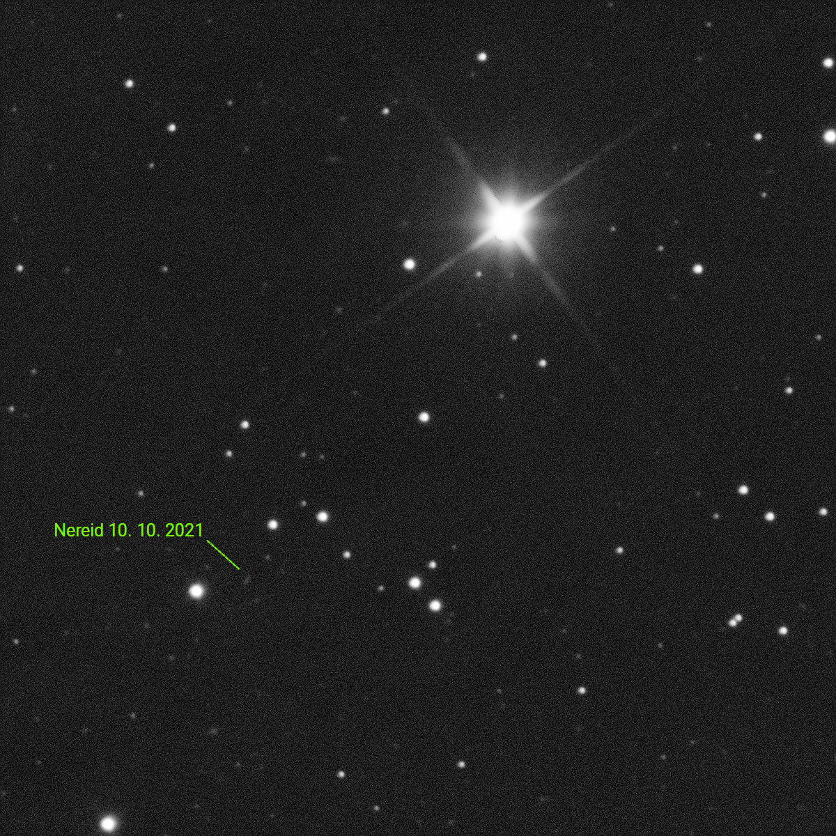 Ich hab die Ergebnisbilder der beiden Tage mit Stellarium abgeglichen. Nereid steht auf beiden Bildern exakt da, wo er nach Stellarium stehen soll.