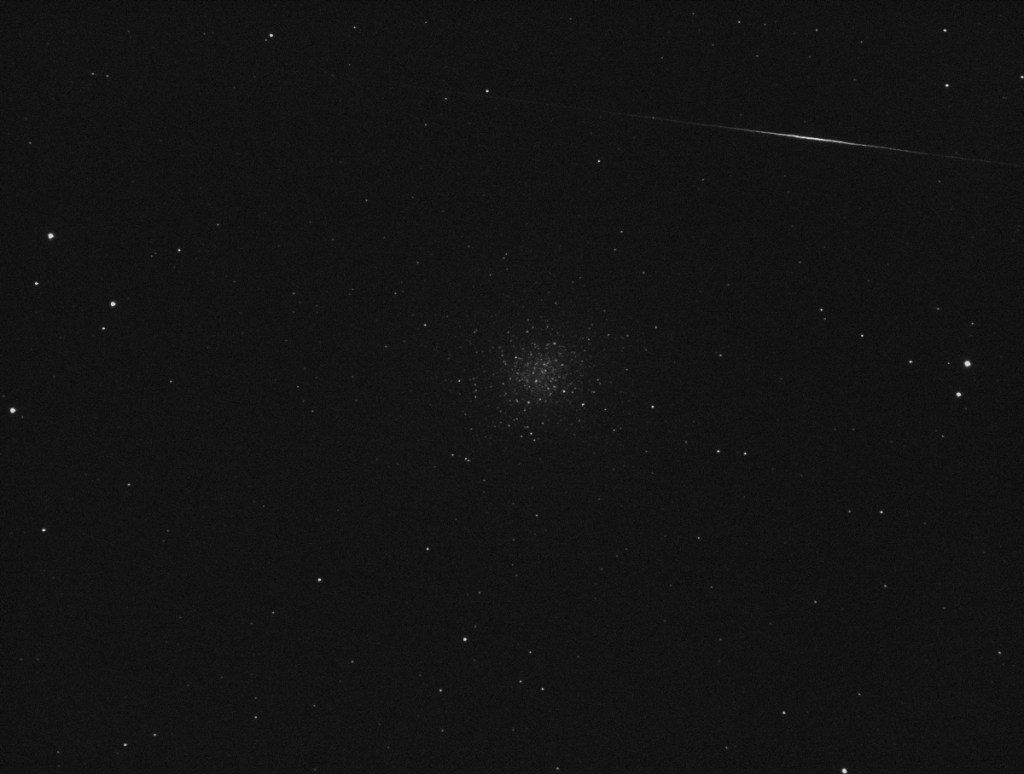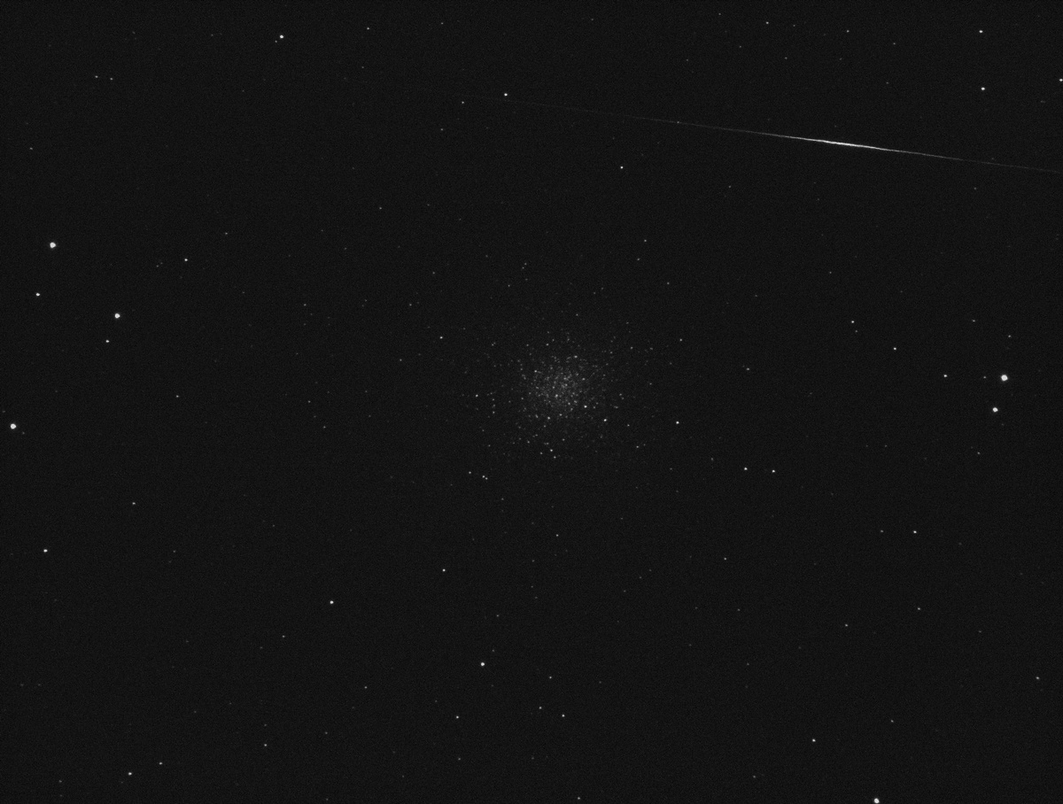 Bei einem Einzelbild vom Kugelsternhaufen Messier 14 hab ich einen Satellitenflare entdeckt