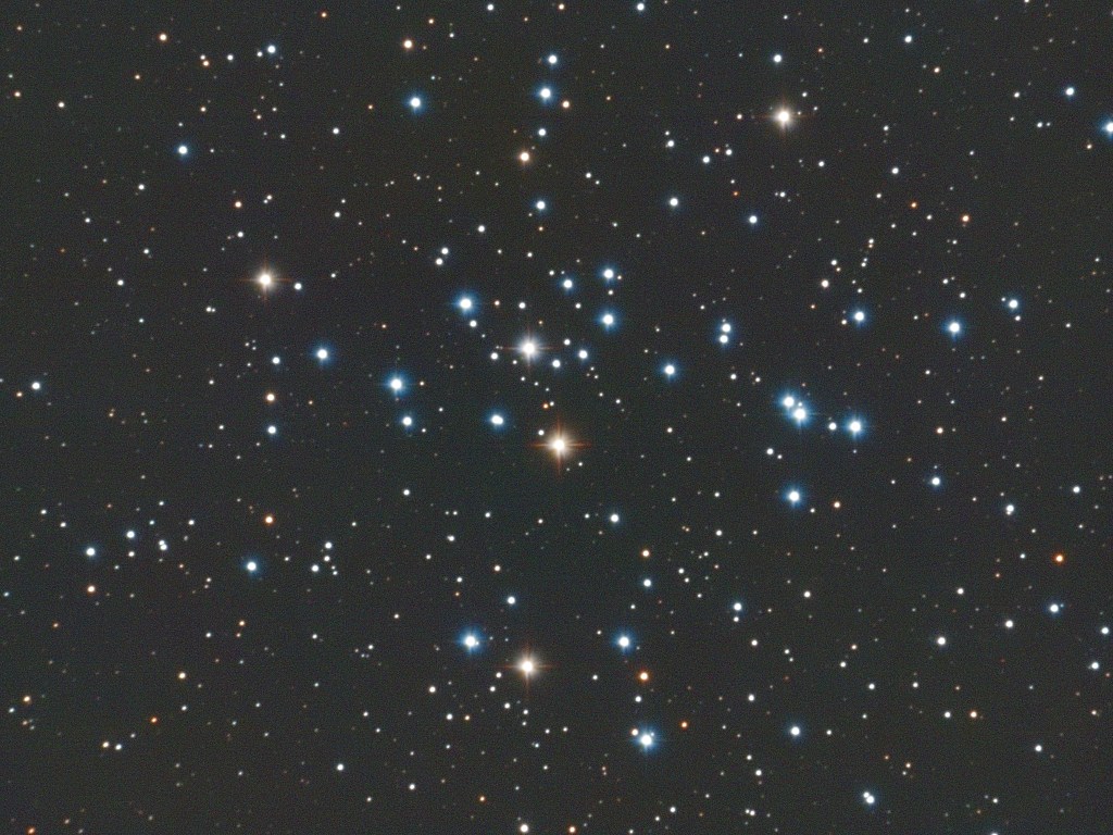 M41, auch als Kleiner Bienenkorbhaufen bekannt, ist ein offener Sternhaufen im Sternbild Großer Hund. 2.300 Lichtjahre entfernt erscheint er uns am Nachthimmel mit seiner Ausdehnung von 38 Bogenminuten etwas größer als der Vollmond. Auf mein Bild hat er nicht komplett drauf gepasst.