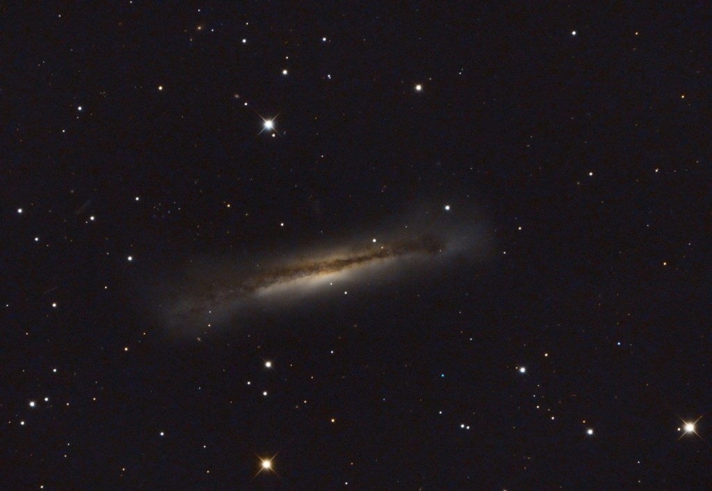 So ähnlich könnte unsere Milchstraße aussehen, wenn wir auf sie von seitwärts draufschauen. Und genau das tun wir nämlich auch, denn die Erde befindet sich in einem Spiralarm fernab des Zentrums unserer Galaxie. Das Band der Milchstraße, das wir in einer dunklen Nacht am Himmel schimmern sehen, sieht doch tatsächlich beinahe so aus wie NGC 3628.