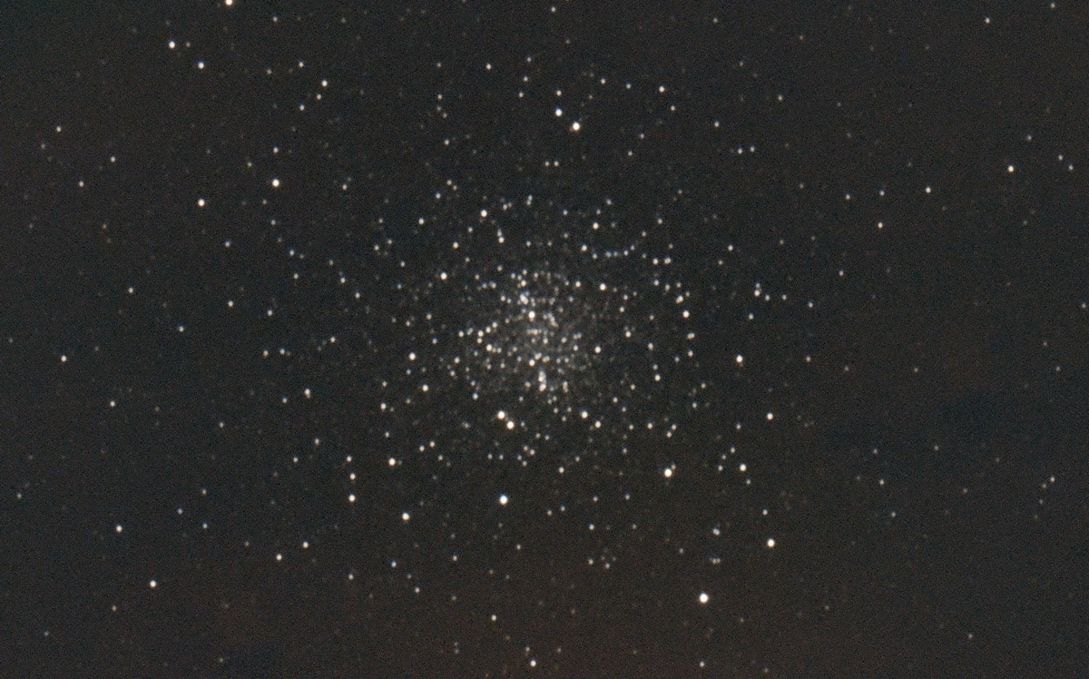 Diese vorhin erwähnten guten Bedingung hatte ich bei meinen Versuchen, M4 zu fotografieren leider nicht. Drum hier nur ein verkleinertes Bild des Kugelsternhaufens, damit man die Störungen nicht so stark bemerkt.