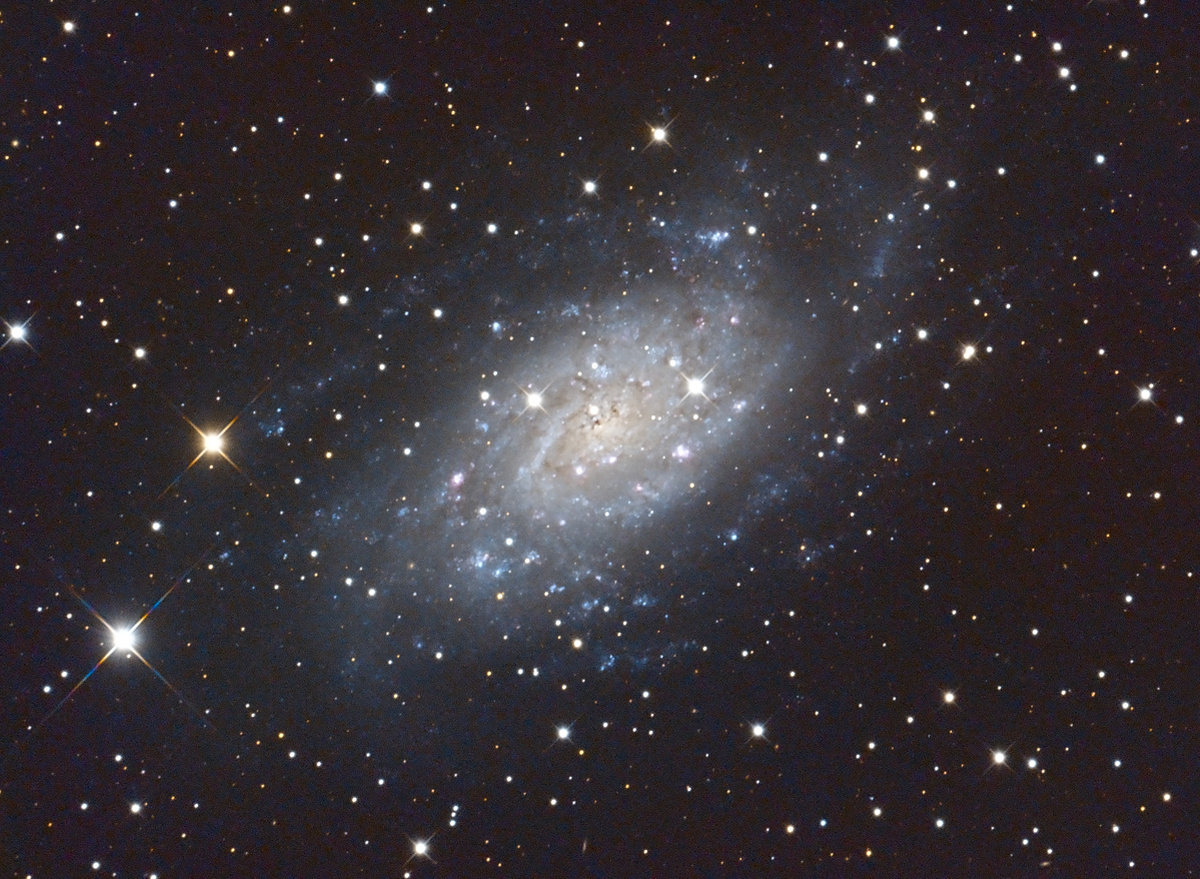NGC 2403 gehört zur M81-Galaxiengruppe und ist damit ein kosmischer Nachbar unserer Milchstraße. Gerade einmal 10 Millionen Lichtjahre beträgt die Entfernung zu uns. Deshalb erreicht sie auch eine scheinbare Helligkeit von immerhin 8,2 Magnituden.