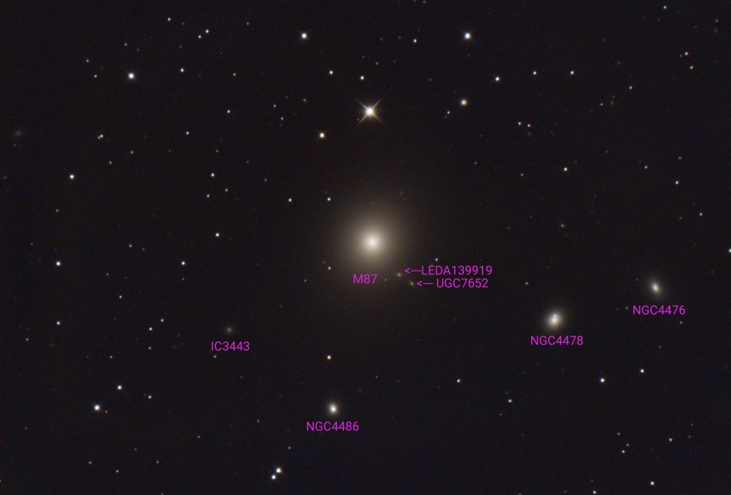 Was sofort auffällt, ist der sehr helle Kern der Galaxie. Und was noch auffällt: Ein paar andere Galaxien können auf dem Bild entdeckt werden. Ich hab mir mal die Freude gegönnt und das Bild beschriftet: