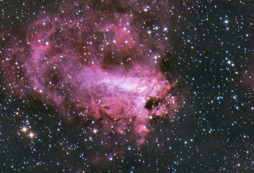 Messier 17 ist also ein Emissionsnebel und was für einer. Er wird zu den hellsten und massereichsten Sternentstehungsgebieten unserer Milchstraße angesehen.
