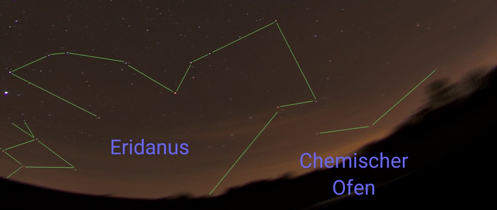 Tief über dem Südhorizont rechts neben dem Fluss Eridanus.