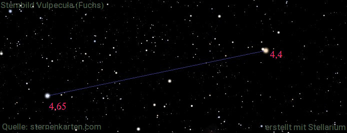 Eine Linie, die die zwei hellsten Sterne des Sternbilds verbindet. Sehr dunkle Sterne.