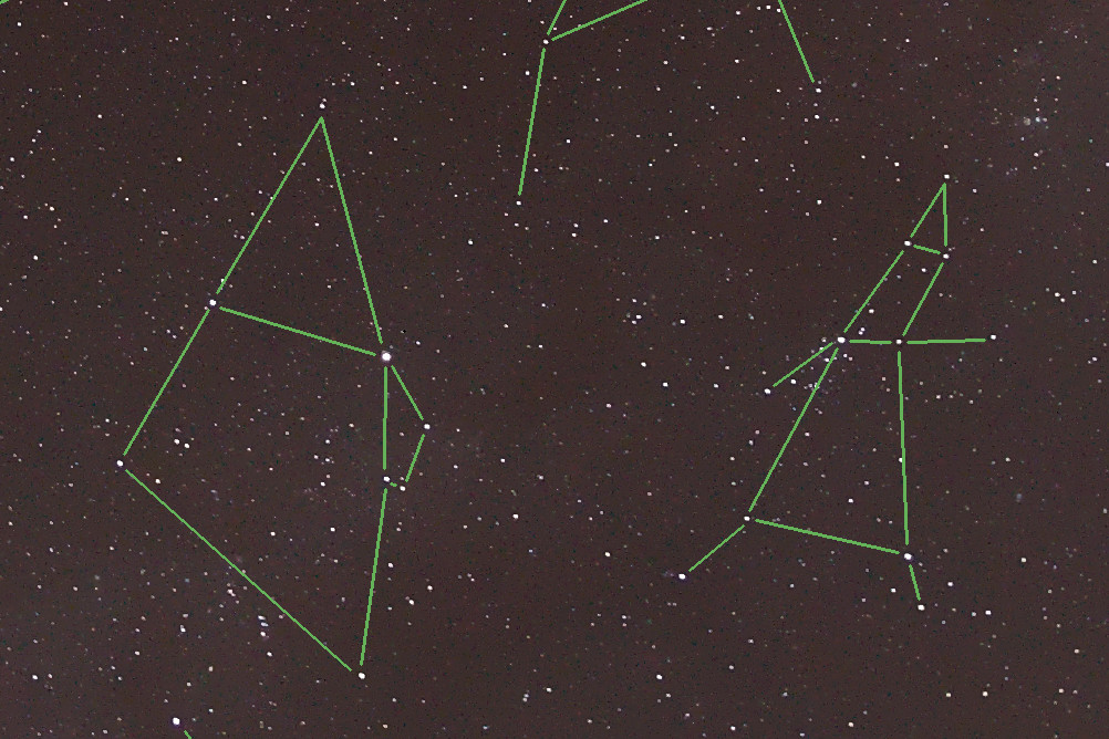 Der Fuhrmann hat einen ziemlich dicken Schädel. Die Hakennase zeigt in Richtung Perseus, ebenso das markant vorgestreckte Kinn. Auf dem Kopf trägt er eine Zipfelmütze (wahrscheinlich ist es Winter…). Der obere Ansatz der Hakennase wird übrigens von einem richtig hellen Stern dargestellt, nämlich von Capella!