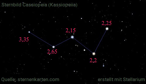 Kassiopei muß ich also nicht groß suchen. Wenn ich sie nicht finde, ist der Himmel wahrscheinlich mit Wolken bedeckt.