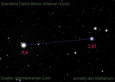 Für mich hat das Sterbild Kleiner Hund schon immer aus zwei Sternen bestanden, aus Prokyon, der wirklich auffällig ist und seinem auch gut sichtbaren Kumpan. Die beiden zusätzlichen Sterne wären ob ihrer Dunkelheit nur nicht sichtbare Makulatur.