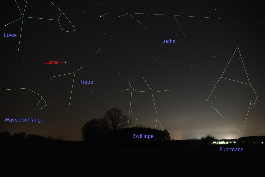 Nicht ganz einfach zu sehen. Befindet sich zwischen dem Löwen und den Zwillingwn.