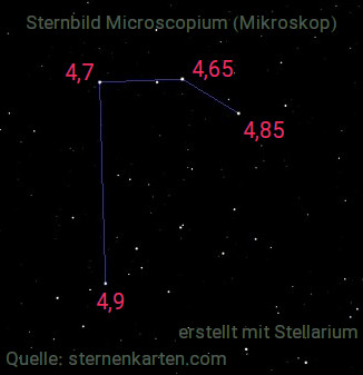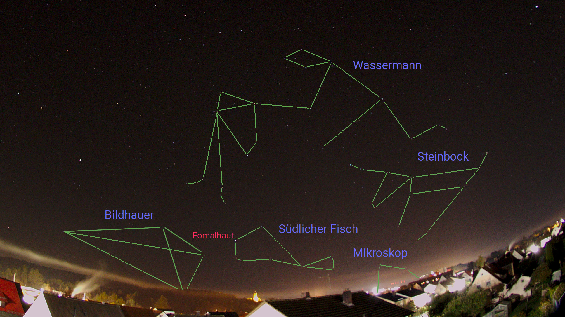 Auf dem Foto steht Fomalhaut etwa im Süden und damit seinen Höchsttand, etwa 11° über dem Horizont. Die höchsten Sterne des Mikroskops steigen, wenn sie im Süden stehen, bis etwa 9° über den Horizont.