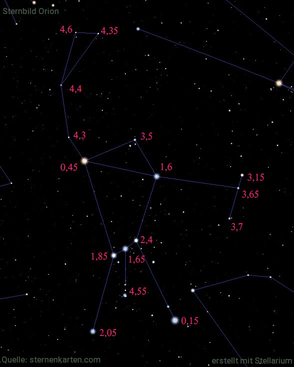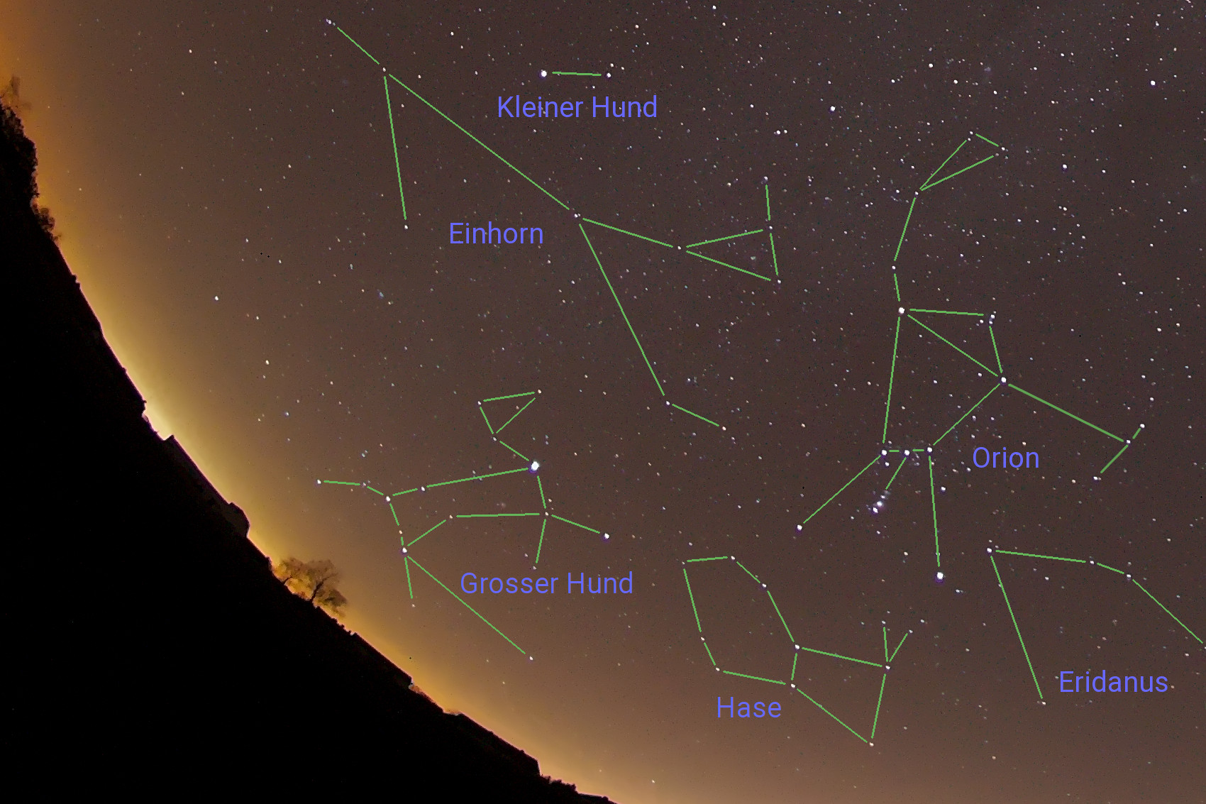 Es braucht keine Orientierungshilfe, um das Sternbild Orion zu finden. Es fällt auf, sobald es über den Horizont gestiegen ist. Und es ist einzigartig in seiner Form, die von vielen hellen Sternen gezeichnet wird.