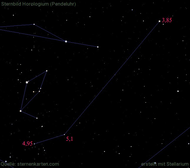 Das Sternbild Pendeluhr liegt zwischen diesen beiden Sternen und ist eine direkter Nachbar des Flusses Eridanus.