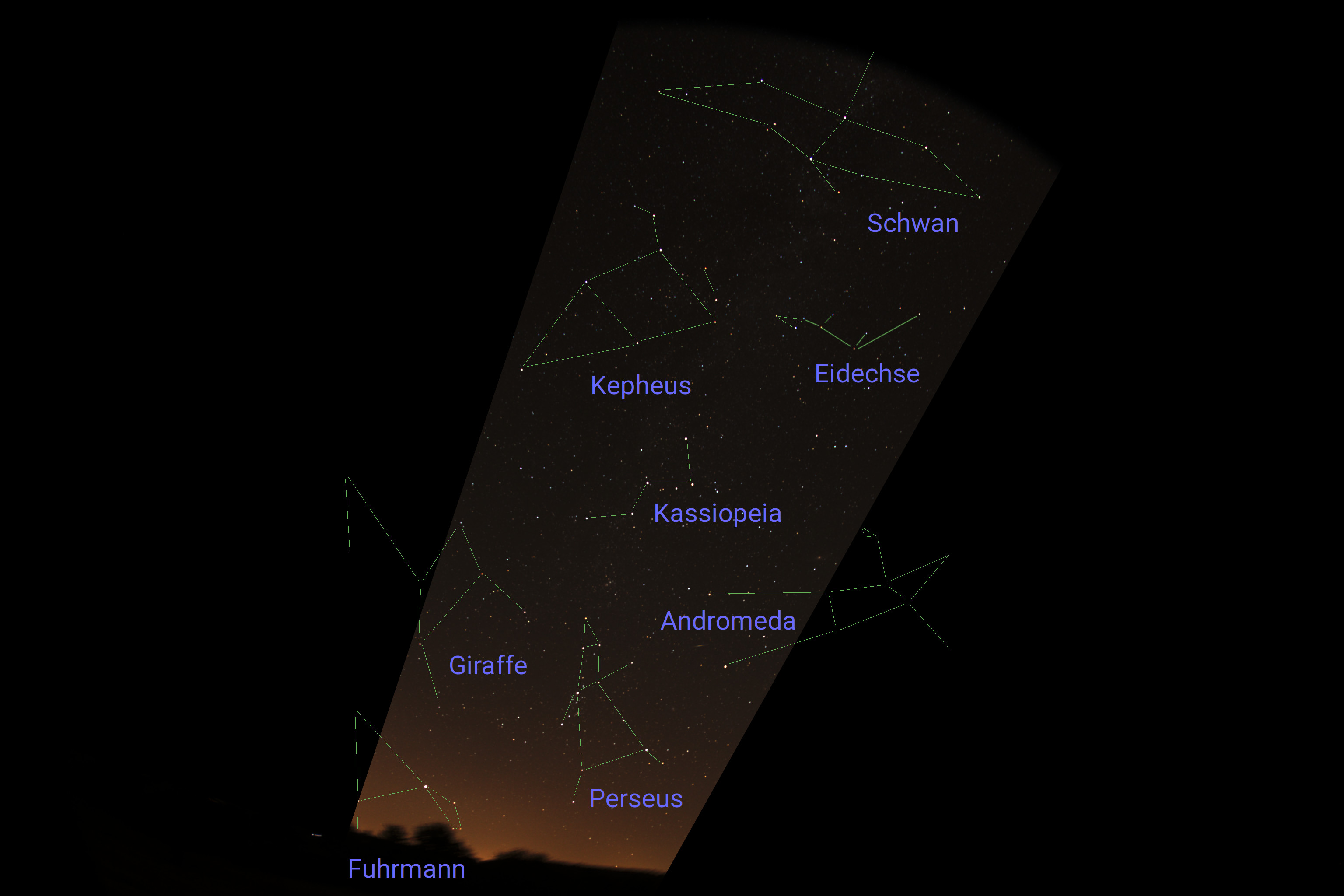 Die Straße war frei und ich schaltete in den fünften Gang. Die Eidechse saß immer noch da und schaute mit zu. Vorsichtig passierte ich die Engstelle zwischen Eidechse und König Kepheus. Die Autobahn führte links an Kassiopeia vorbei. Nur noch ein paar Lichtjahre bis zu Andromeda.