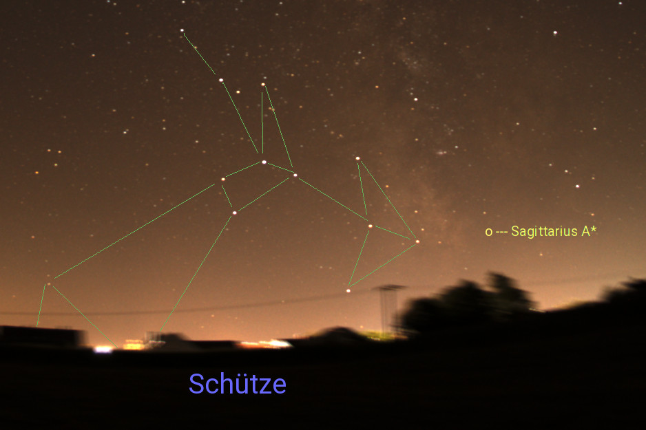 Auch wenn es beinahe so aussieht, als würde der Schütze den Skorpion jagen, möchte ich daraus keine Geschichte basteln. Ich möchte vielmehr über ein Besonderheit berichten, die das Sternbild Schütze zu etwas einmaligem macht. Denn dort im Sternbild Schütze befindet sich das Zentrum unserer Galaxie.