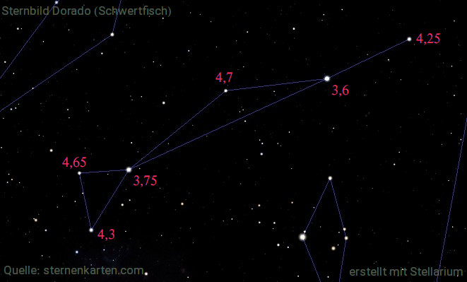 Einige Sterne des Sternbildes sind zwar ein wenig düster, dafür kann man andere gut erkennen. Die Sternenkonstellation dort hat auf jeden Fall einen großen Vorteil: Man kann tatsächlich einen Schwertfisch in den Himmel malen.