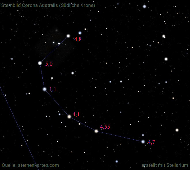 Schnell nachgeschaut, wo diese Sterne hingehören. Die Antwort: Die Sterne sind ein Teil vom Sternbild Südliche Krone.