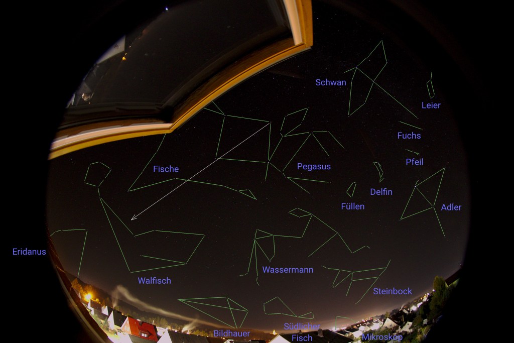 Die sicherste Methode ist es, die Diagonale im Pegasusquadrat über das Sternbild Fische hinaus zu verlängern.