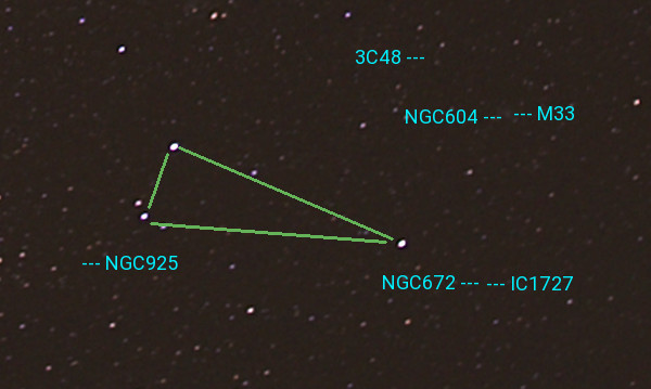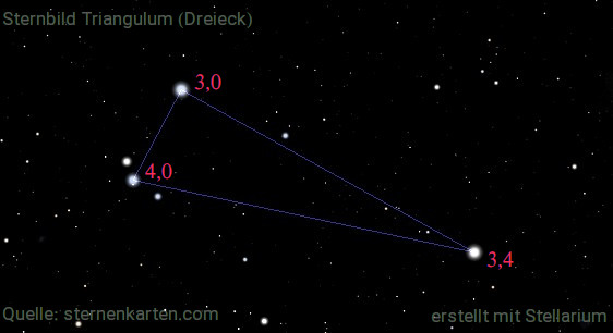 Die scheinbaren Helligkeiten der Sterne sind im Bild rot markiert und in Magnituden angegeben.