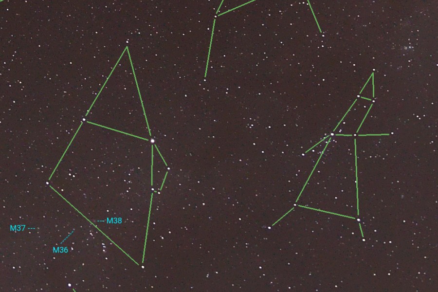 Die scheinbaren Helligkeiten der Sterne sind im Bild rot markiert und in Magnituden angegeben.