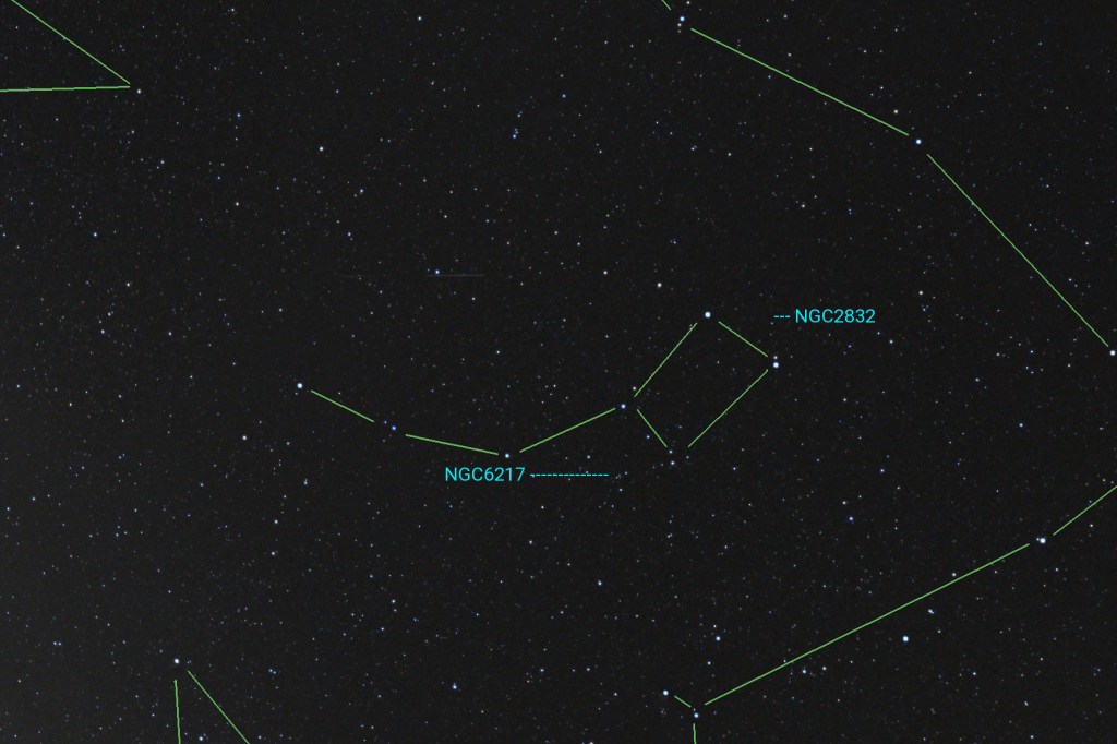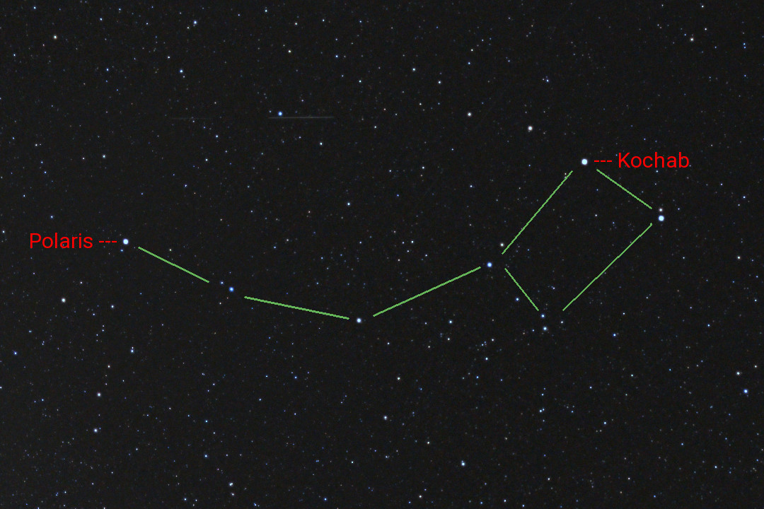 Die scheinbaren Helligkeiten der Sterne sind im Bild rot markiert und in Magnituden angegeben.