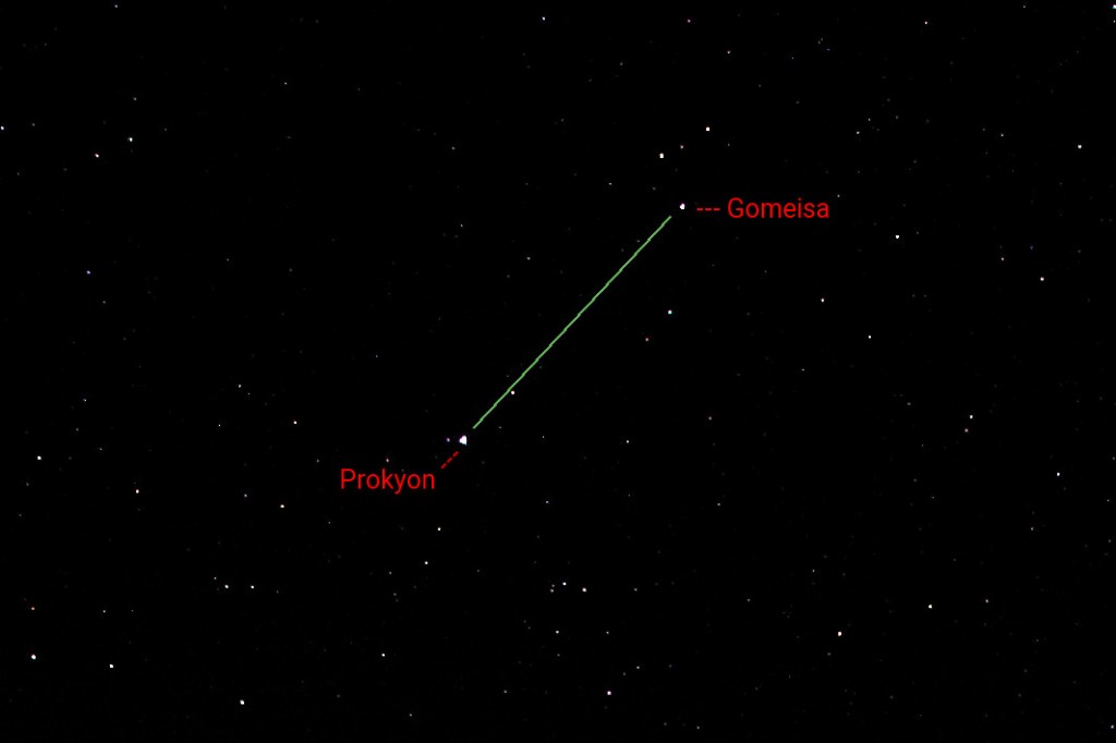 Die scheinbaren Helligkeiten der Sterne sind im Bild rot markiert und in Magnituden angegeben.