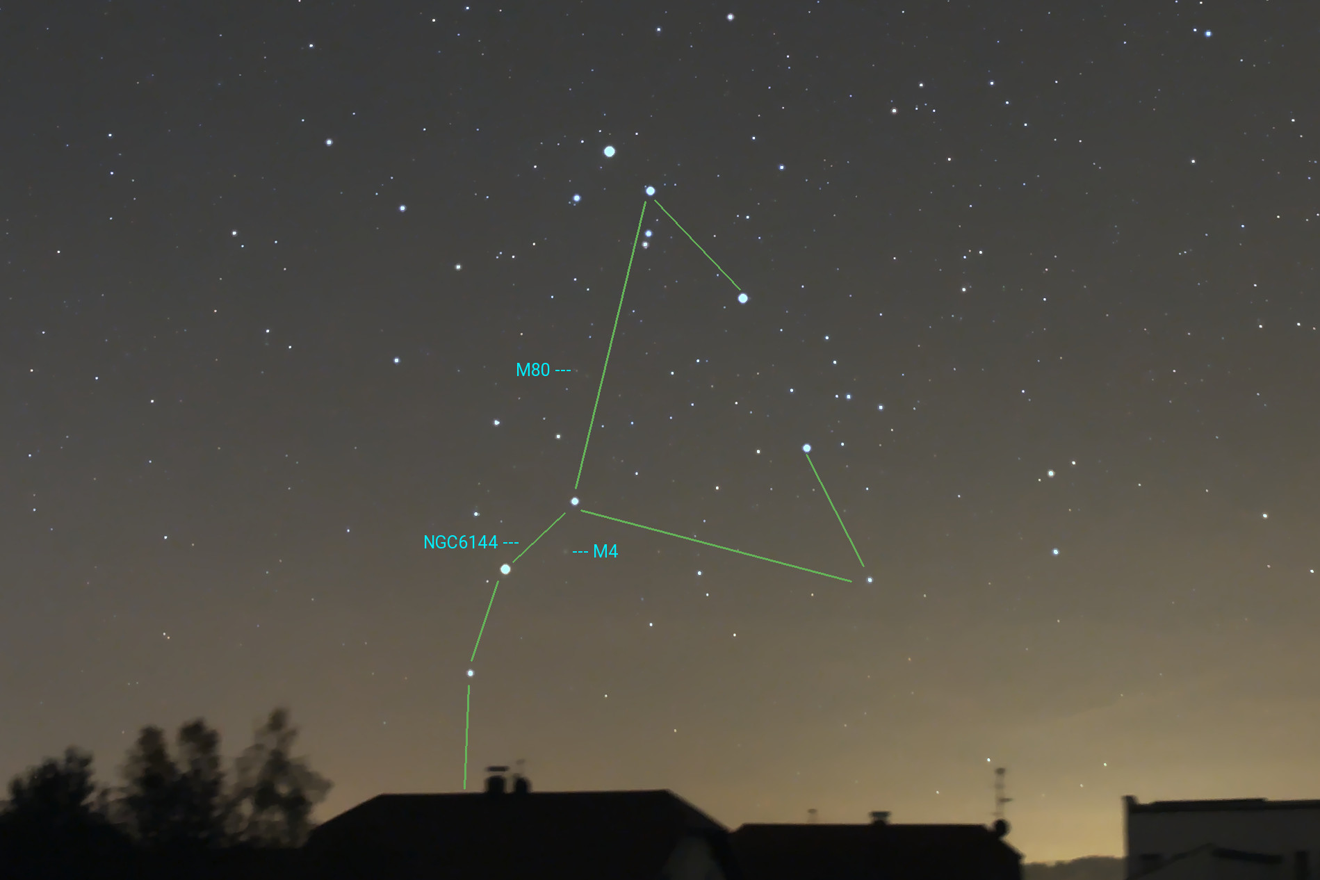 Die scheinbaren Helligkeiten der Sterne sind im Bild rot markiert und in Magnituden angegeben.