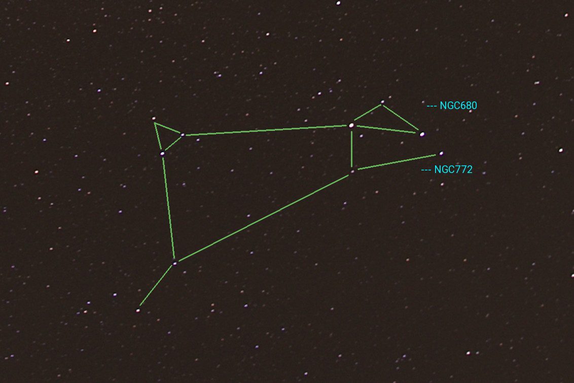 Die scheinbaren Helligkeiten der Sterne sind im Bild rot markiert und in Magnituden angegeben.